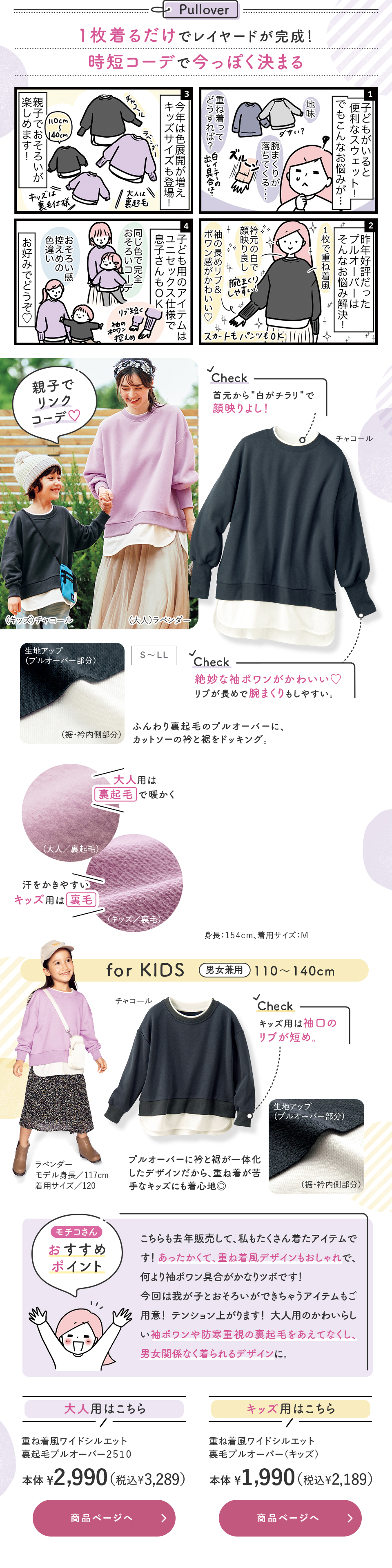 重ね着風ワイドシルエット裏起毛プルオーバー2510 重ね着風ワイドシルエット裏起毛プルオーバー(キッズ) 重ね着風ワイドシルエット裏起毛プルオーバー2510 重ね着風ワイドシルエット裏起毛プルオーバー(キッズ)