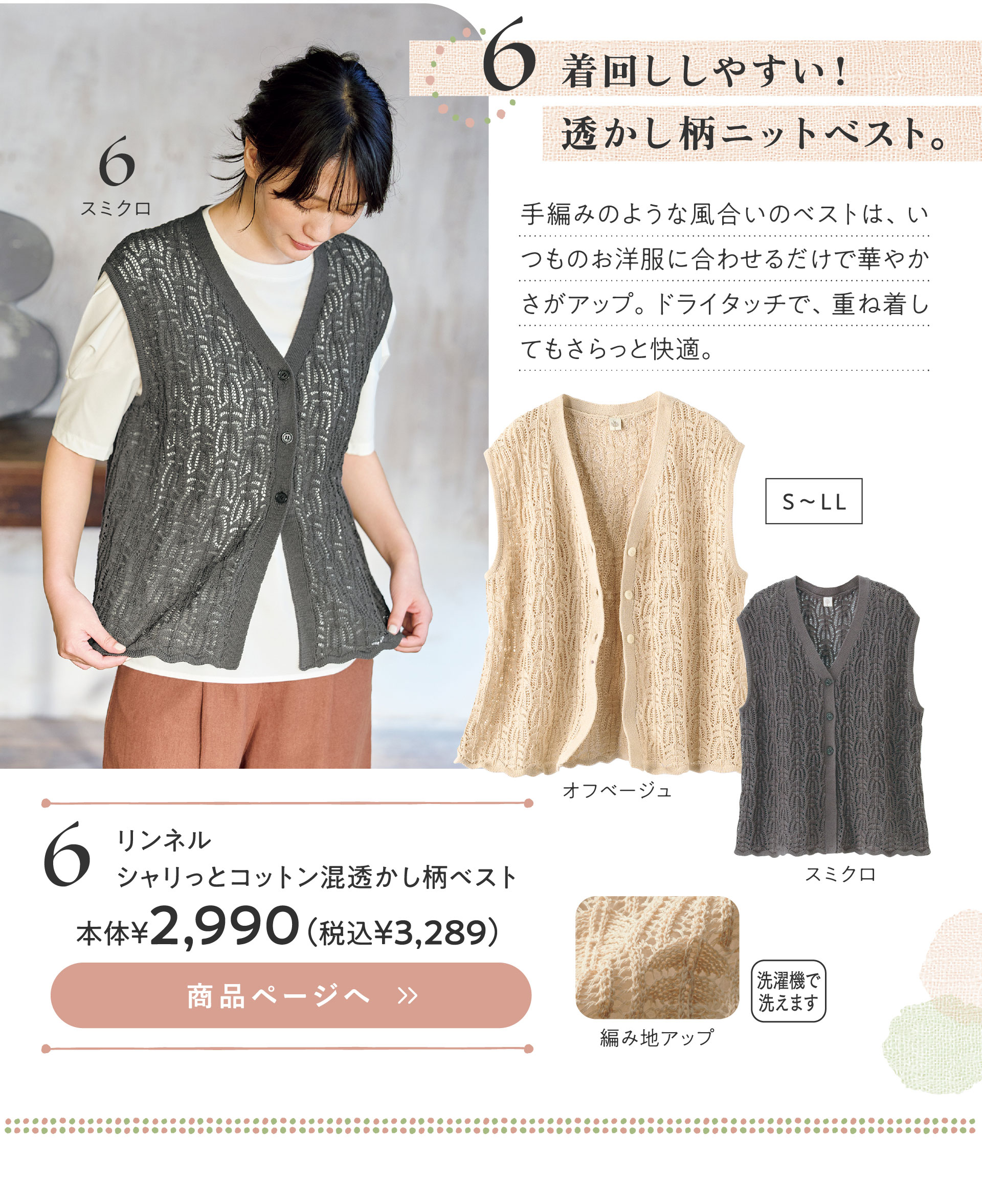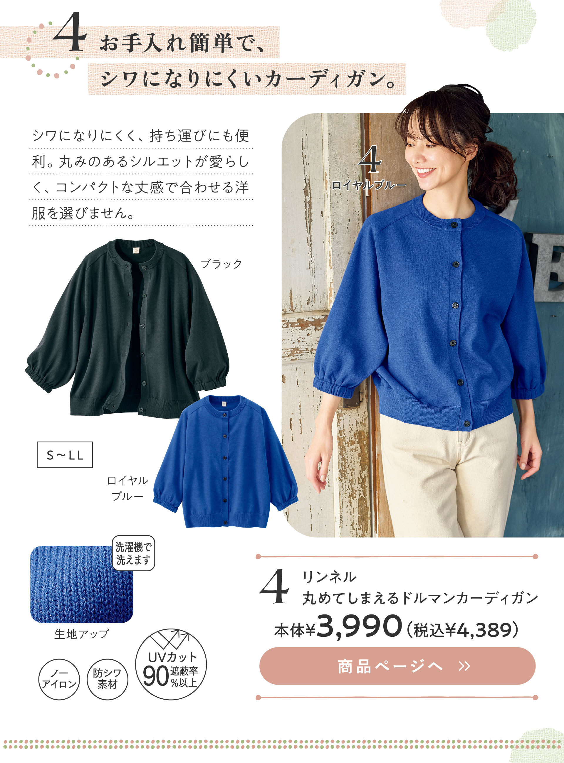 4 お手入れ簡単で、シワになりにくいカーディガン。