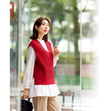 毛玉になりにくい もちもちケーブル柄ニットベスト
